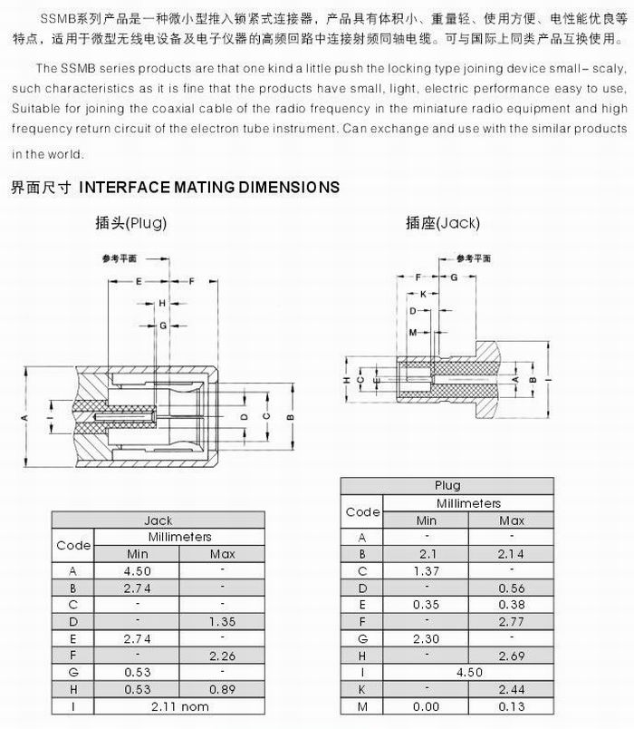 上一篇: SSMB型射频同轴连接器
